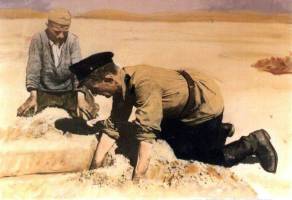 Immediately after the end of the war in 1945, a number of David-Horodok residents, who had survived the Holocaust because they had been in the Soviet Union during the war, arrived in the town of David-Horodok and its land soaked in the blood of the Jews. They did not find a single Jewish soul, but they found a large mass grave of David-Horodok Jews.